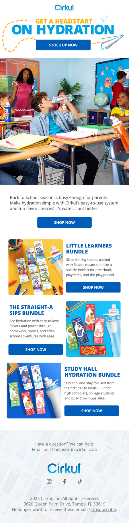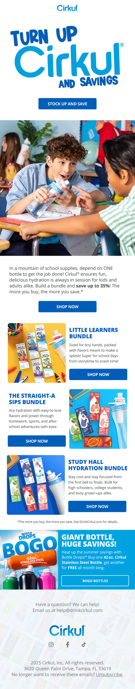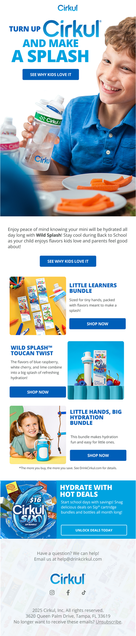 Centered around the tagline "Turn Up Cirkul," this campaign was designed to approach back to school season with a fresh take on making water fun, desirable, and accessible for kids!