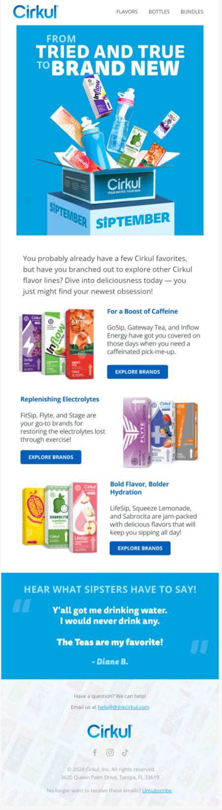 Jacqueline E. said, “I want to say that my boyfriend and I began using Cirkul when we saw them at Walmart. We tried to stray from soda and be healthier. Once we started to use Cirkul, we both fell in love with the product. We referred his parents and immediately set up an auto-ship plan!”